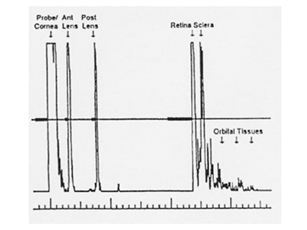 A-scan ultrasound biometry, commonly referred to as an A-scan (short for Amplitude scan), is routine type of diagnostic test used in optometry or ophthalmology. The A-scan provides data on the length of the eye, which is a major determinant in common sight disorders. The most common use of the A-scan is to determine eye length for calculation of intraocular lens power.